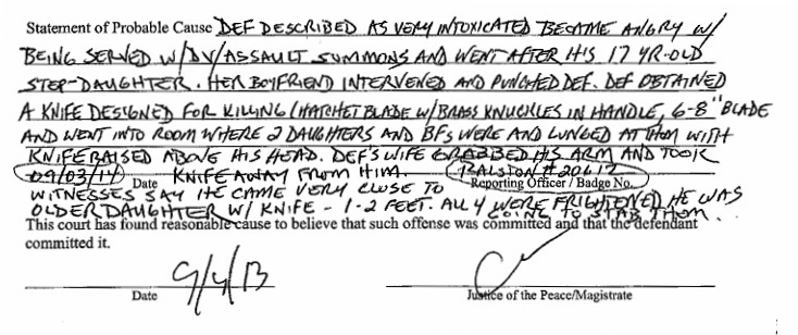 The same year Jen appeared in court against me, domestic violence allegations were made against her (now ex-)husband. These escalated into his prosecution for assault with a deadly weapon. Consider the implications of the narrative the police recorded (click here to see a typographic rendering):